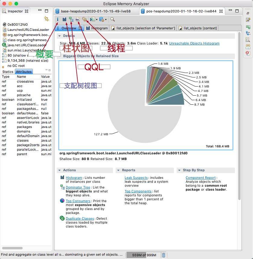 MAT 支持一种类似于 SQL 的查询语言 OQL(Object Query Language),这个查询语言 VisualVM 工具也支持。