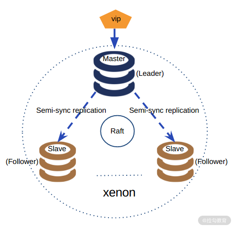 这一代需要 MySQL 是 5.7 以后的版本。有一些典型的框架来支持该技术,如 MySQL Replication Manager、GitHub-orchestrator 和国内青云开源的 Xenon 等。