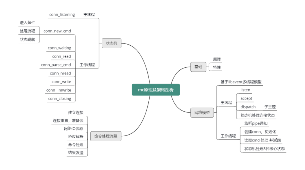 最后通过梳理 Mc 命令处理的全过程,学习了 Mc 如何建立连接,如何进行命令读取、处理及响应,从而把 Mc 的系统架构、多线程网络模型、状态机处理进行逻辑打通。