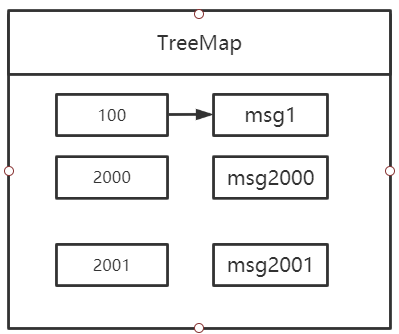 规则二:消息在 ProcessQueue 中实际上维护的是一个 TreeMap,key 为消息的偏移量、vlaue 为消息对象,由于 TreeMap 本身是排序的,故很容易得出最大偏移量与最小偏移量的差值,即有可能存在处理队列中其实就只有 3 条消息,但偏移量确超过了 2000,例如如下图所示: