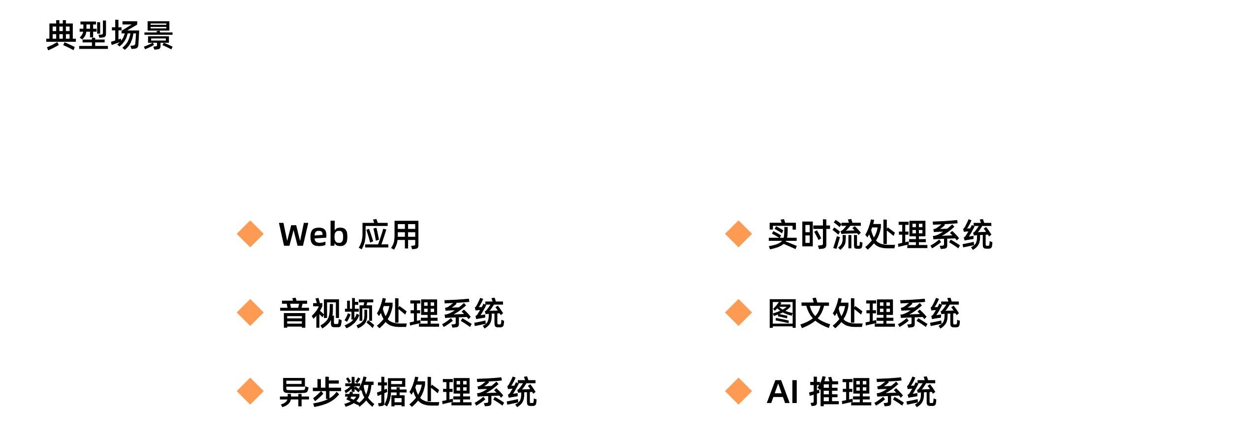 - 对计算能力有很强的弹性诉求的应用: 比如 AI 推理、音视频处理、图文转换等;