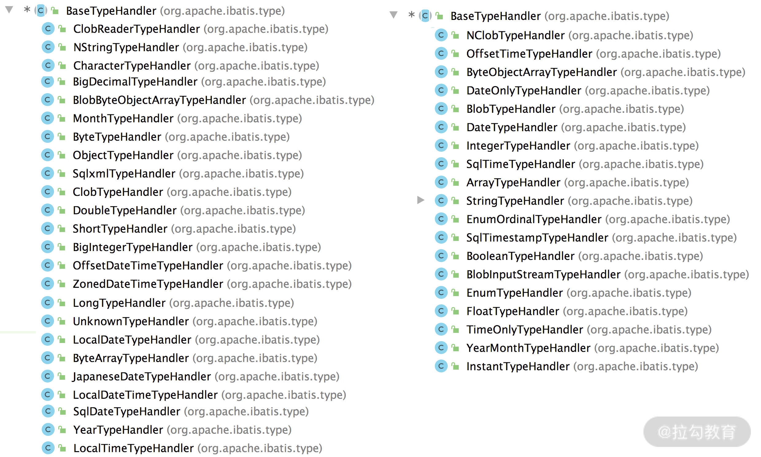 BaseTypeHandler 的具体实现比较简单,这里就不再展示,你若感兴趣的话可以参考源码进行学习。