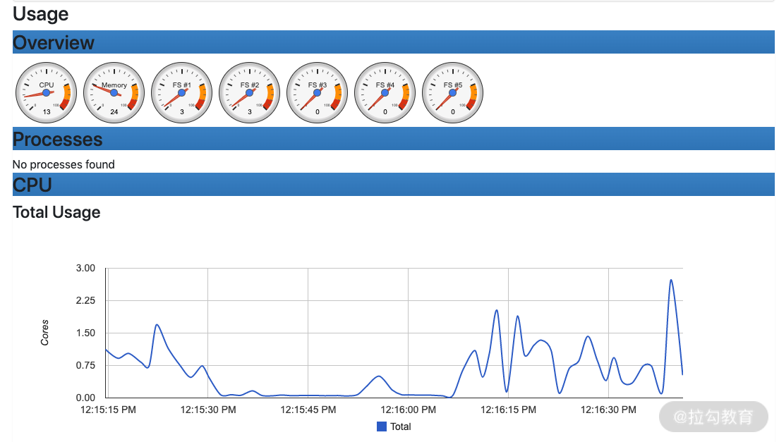 cAdvisor 不仅可以监控容器的资源使用情况,还可以监控主机的资源使用情况。下面我们就先看下它是如何查看主机资源使用情况的。