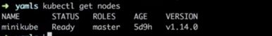下一步我们利用 kubectl 来看一下这个集群中节选的状态,可以看到这个master 的节点已经是 running 状态: