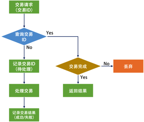 于是,当收到交易请求的时候,我们就会到这个存储中去查询。如果查找到了,那么就不再做查询了,并把上次做的结果返回。如果没有查到,那么我们就记录下来。