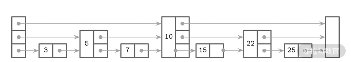 如果我们以寻找 15 为例来说明跳表的查找顺序。
