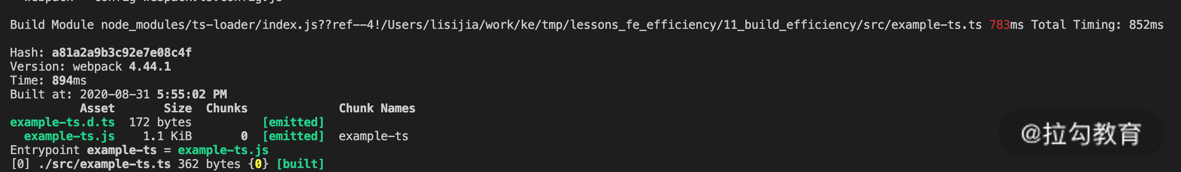 Webpack 中编译 TS 有两种方式:使用 ts-loader 或使用 babel-loader。其中,在使用 ts-loader 时,由于 ts-loader 默认在编译前进行类型检查,因此编译时间往往比较慢,如下面的图片所示。