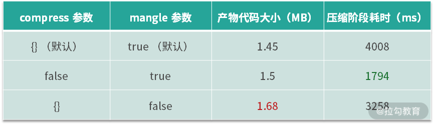 在作为 Webpack 插件的 TerserWebpackPlugin 中,对执行效率产生影响的配置主要分为 3 个方面: