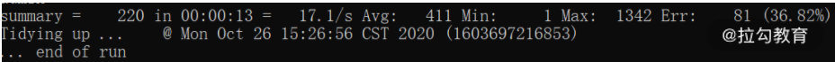 从图中可以看到,命令行的方式直接产生了总的 TPS、报错和一些时间层级的指标。命令行的执行方式规避了一些图形化界面存在的问题,但这样的结果输出方式存在 2 个问题: