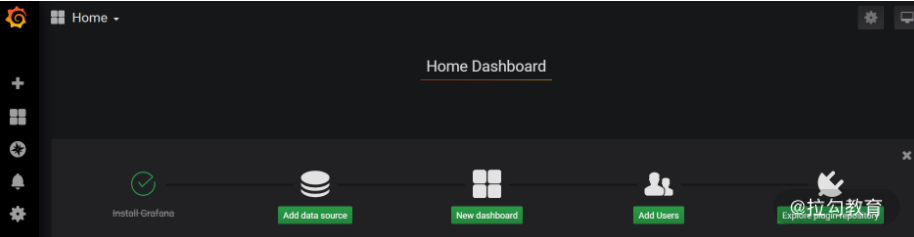 输入密码后如果出现了如下界面,说明 Grafana 安装成功了。