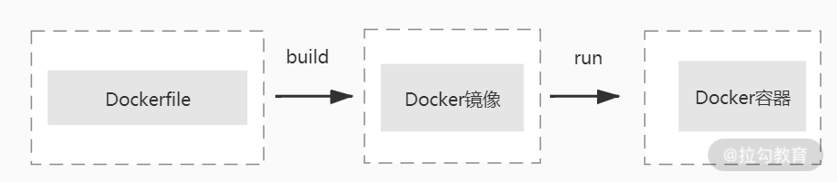 通过下面这个示意图可以看出从 Dockfile 到 Docker 容器的过程: