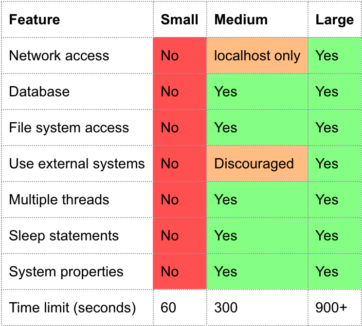 Google 针对这几种测试类型列了一张表,根据数据给出了明确区分: