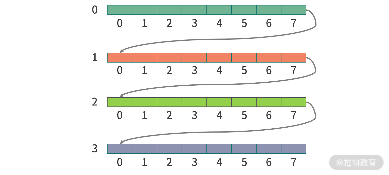 当 CPU 遍历二维数组的时候,会先从 CPU 缓存中取数据。