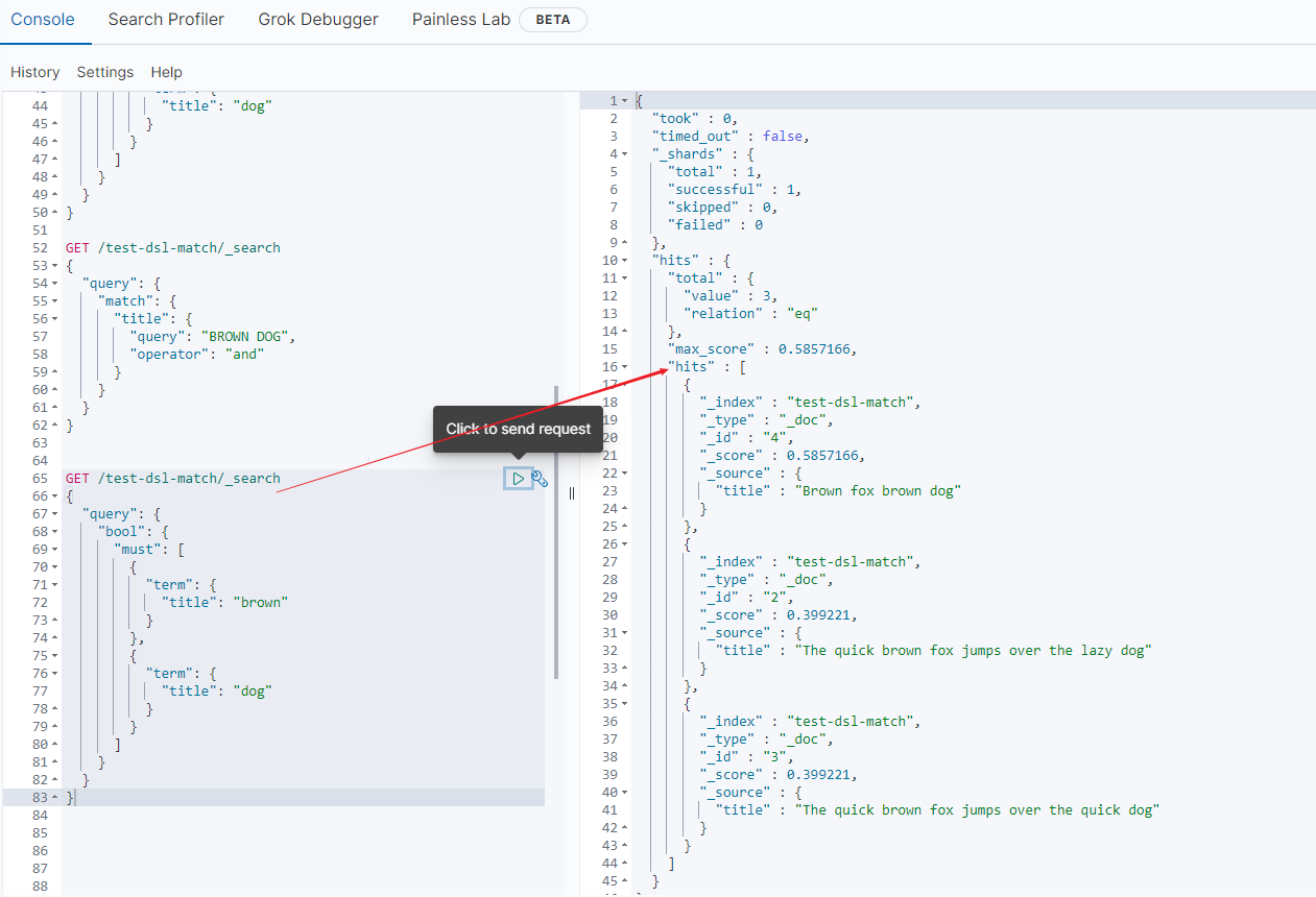 我们在上文中复合查询中已经使用了match多个词,比如“Quick pets”; 这里我们通过例子带你更深入理解match多个词