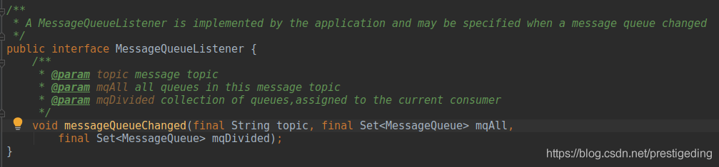 注册消息队列变更回调时间,即消费端分配到的队列发生变化时触发的回调函数,其声明如下: