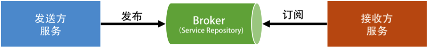 所谓 Broker,就是一个中间人,发送方(sender)和接收方(receiver)都互相看不到对方,它们看得到的是一个 Broker,发送方向 Broker 发送消息,接收方向 Broker 订阅消息。如下图所示。