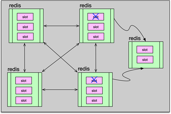 随着业务访问模型的变化,Redis 部分节点可能会出现压力过大、访问不均衡的现象,此时可以将 slot 在 Redis 分片节点内部进行迁移,以均衡访问。如果业务不断发展,数据量过大、TPS过高,还可以将 Redis 节点的部分 slot 迁移到新节点,增加 Redis-Cluster 的分片,对整个 Redis 资源进行扩容,已提升整个集群的容量及读写能力。