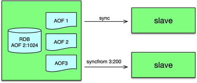 后续同步时,slave 首先传递之前复制的 aof 文件的 id 及位置。master 的复制线程根据这个信息,读取对应 aof 文件位置之后的所有内容,发送给 slave,即可完成数据同步。