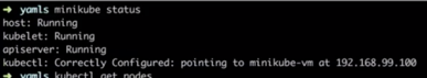 首先,我们先看一下 minikube 的 status,可以看到 kubelet master 和 kubectl 都是配置好的。