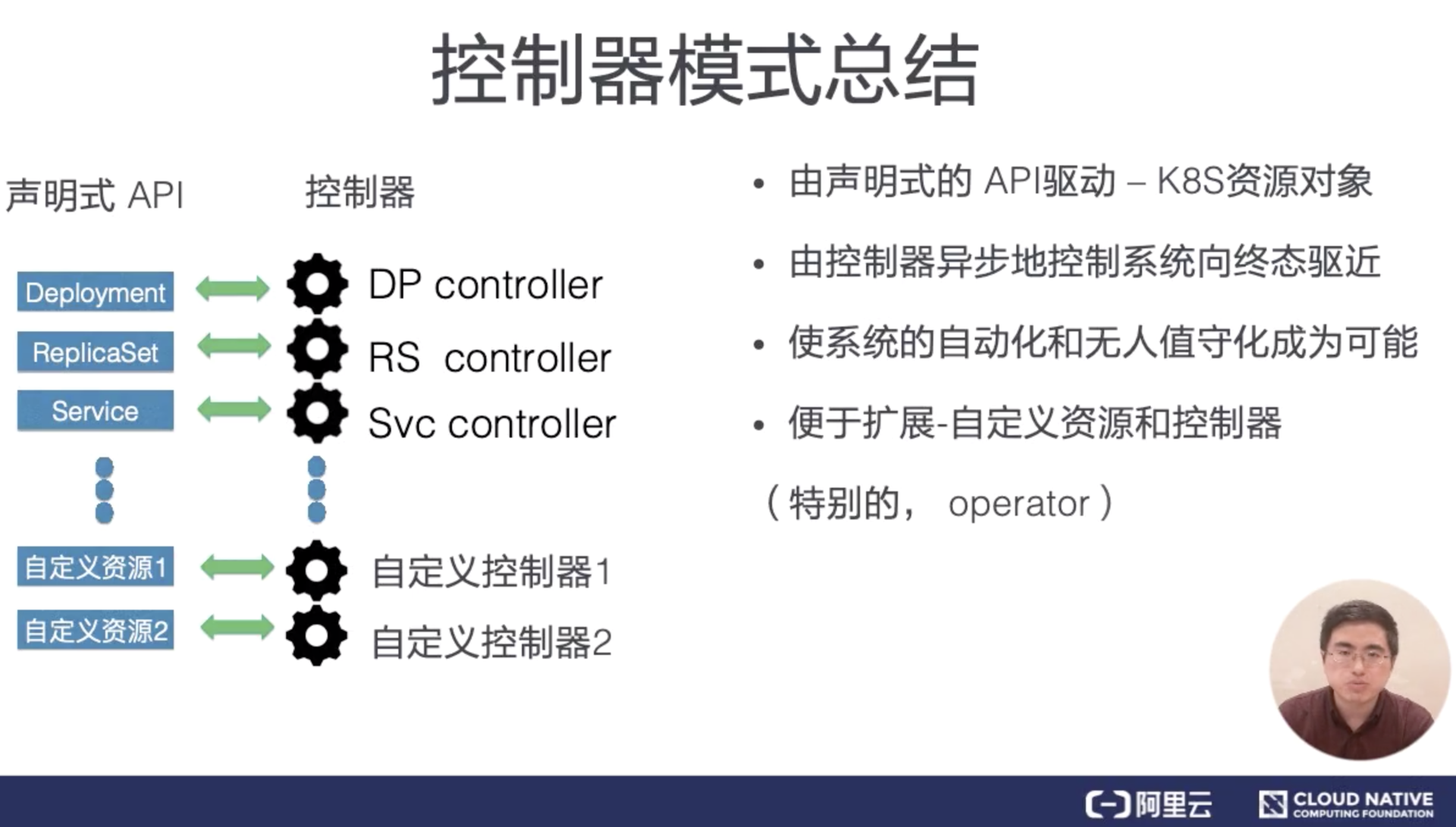 不需要额外的操作数据。另外因为状态的幂等性,可以在任意时刻反复操作。在声明式系统运行的方式里,正常的操作实际上就是对资源状态的巡检,不需要额外开发巡检系统,系统的运行逻辑也能够在日常的运行中得到测试和锤炼,因此整个操作的稳定性能够得到保证。