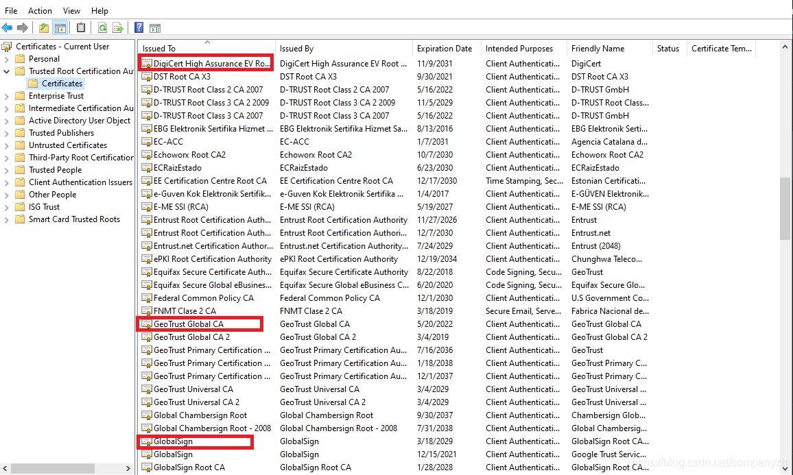是不是可以看到我刚刚举例的几个CA都在其中。我们可以在这里看到很多其他名称,其中一些可能是熟悉的,还有许多其他名称是不熟悉的。Windows也可以信任根据需要下载的其他CA。因此,不仅限于我们在此处列出的证书颁发机构。