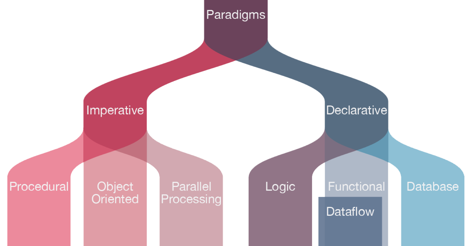 上面这个图有点乱,不过总体说来,我们可以简单地把这世界上纷乱的编程范式,分成这几类:声明式、命名式、逻辑的、函数式、面向对象的、面向过程的。
