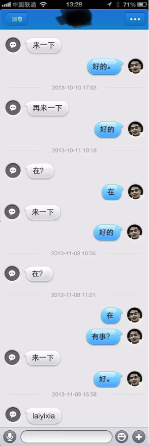 写了这么多,还是让你来开心一下吧。下面这个图是我在某国内互联网公司工作的时候和我老板的聊天记录。是的,就只有这些信息,每次看到这个聊天记录时,我都会有一种莫明的喜感。结合这篇文章的主题,也给你开心开心。