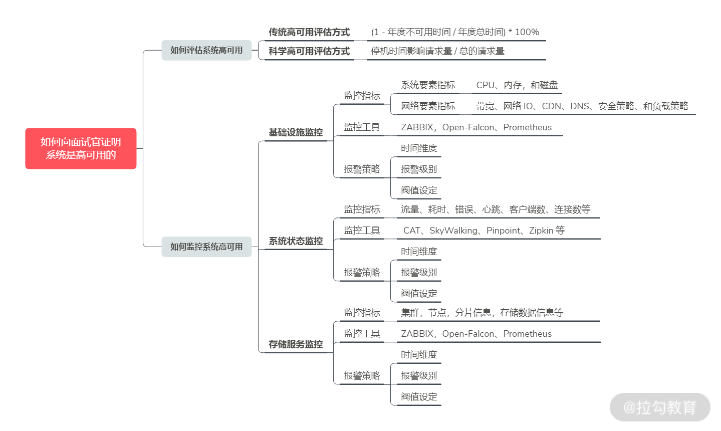 所以,当你向面试官证明系统高可用时,其实是在回答这样几个问题: