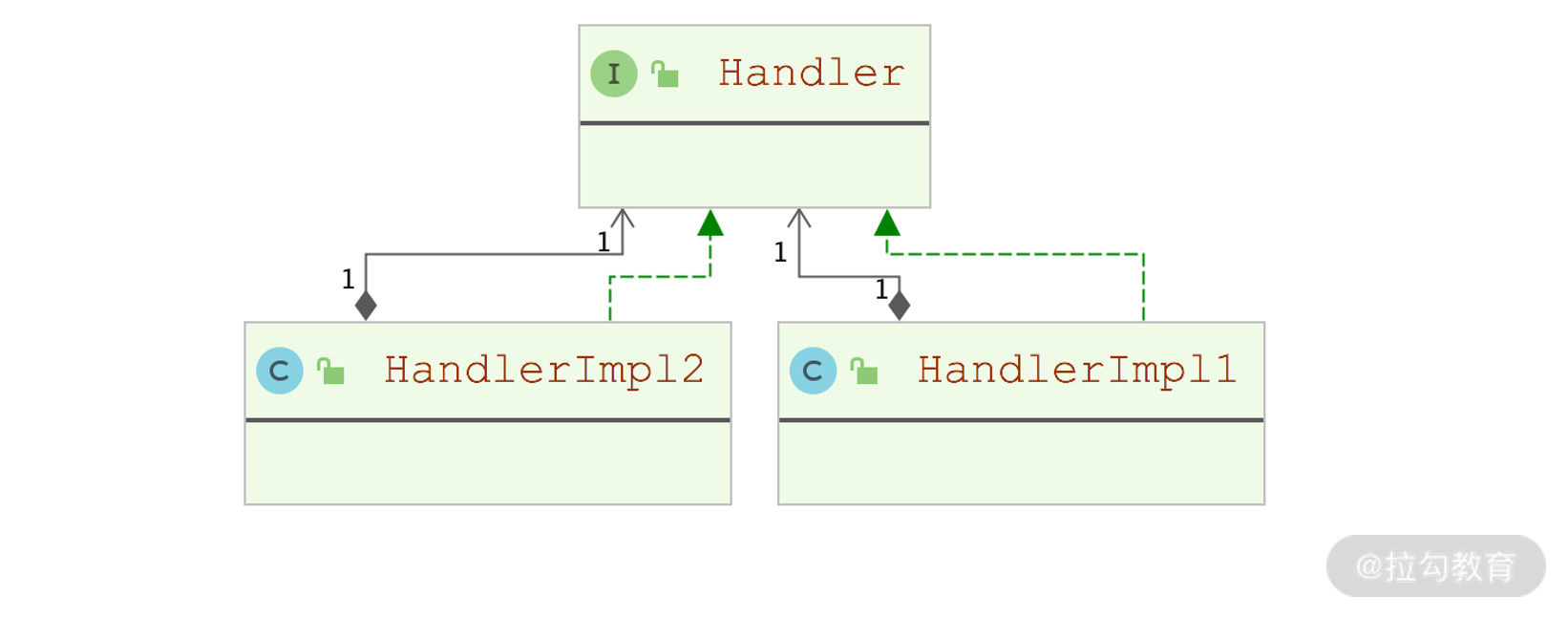 由此可见,责任链模式可以帮助我们复用 Handler 处理器的实现逻辑,提高系统的可维护性和灵活性,很好地符合了“开放-封闭”原则。
