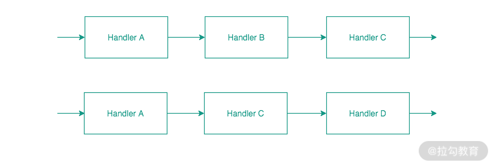 这样做既可以将复杂、臃肿的逻辑拆分,便于维护,又能将不同的 Handler 处理器分配给不同的程序员开发,提高开发效率。