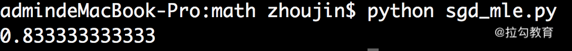 如果我们用求导法,则有(5-6θ)/(θ*(1-θ)) = 0,解得 θ = 5/6 = 0.8333,这与我们用梯度下降法求得的结果一致。