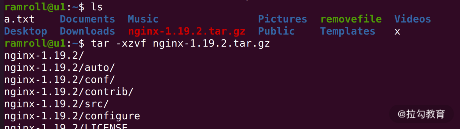 -x代表 extract(提取)。-z代表gzip,也就是解压gz类型的文件。-v代表 verbose(显示细节),如果你不输入-v,就不会打印解压过程了。-f代表 file,这里指的是要操作文件,而不是磁带。 所以tar解压通常带有x和f,打包通常是c就是 create 的意思。