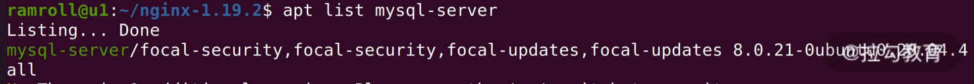 如果我们想精确查找一个叫作mysql-server的包,可以用apt list。