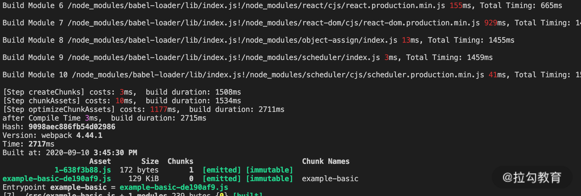 正如我们所期望的,再次构建时,在编译模块阶段只对有变化的文件进行了重新编译,实现了增量编译的效果。