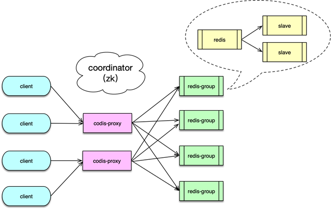 Codis 系统主要由 Codis-server、Codis-proxy、Codis-dashboard、Zookeeper 等组成。