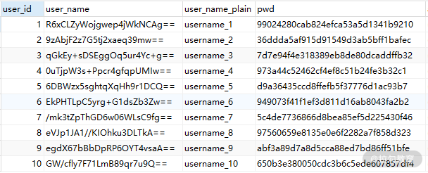 user_id: 2, user_name: username_2, pwd: 36ddda5af915d91549d3ab5bff1bafec