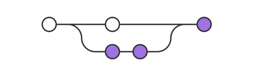 就像上面这个图显示的一样,紫色的分支就是功能分支,合并后就会像上面这个样子。