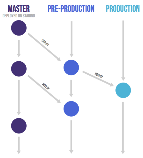 其中一个是引入环境分支,如下图所示,其包含了预发布(Pre-Production)和生产(Production)分支。